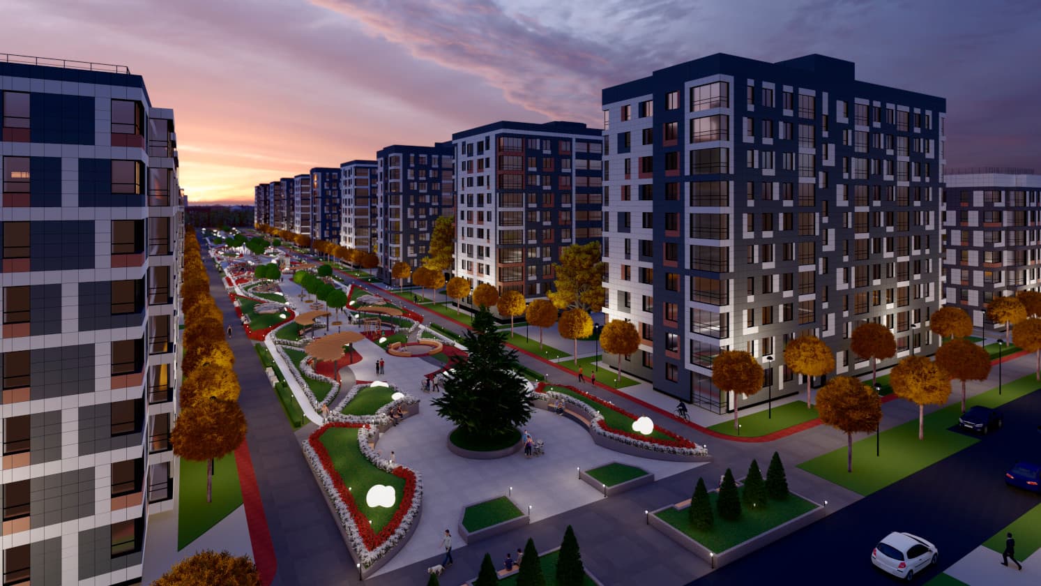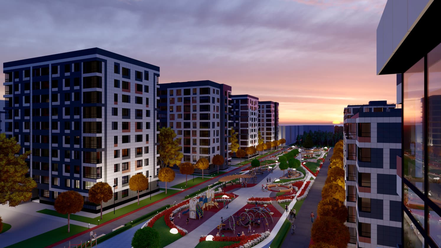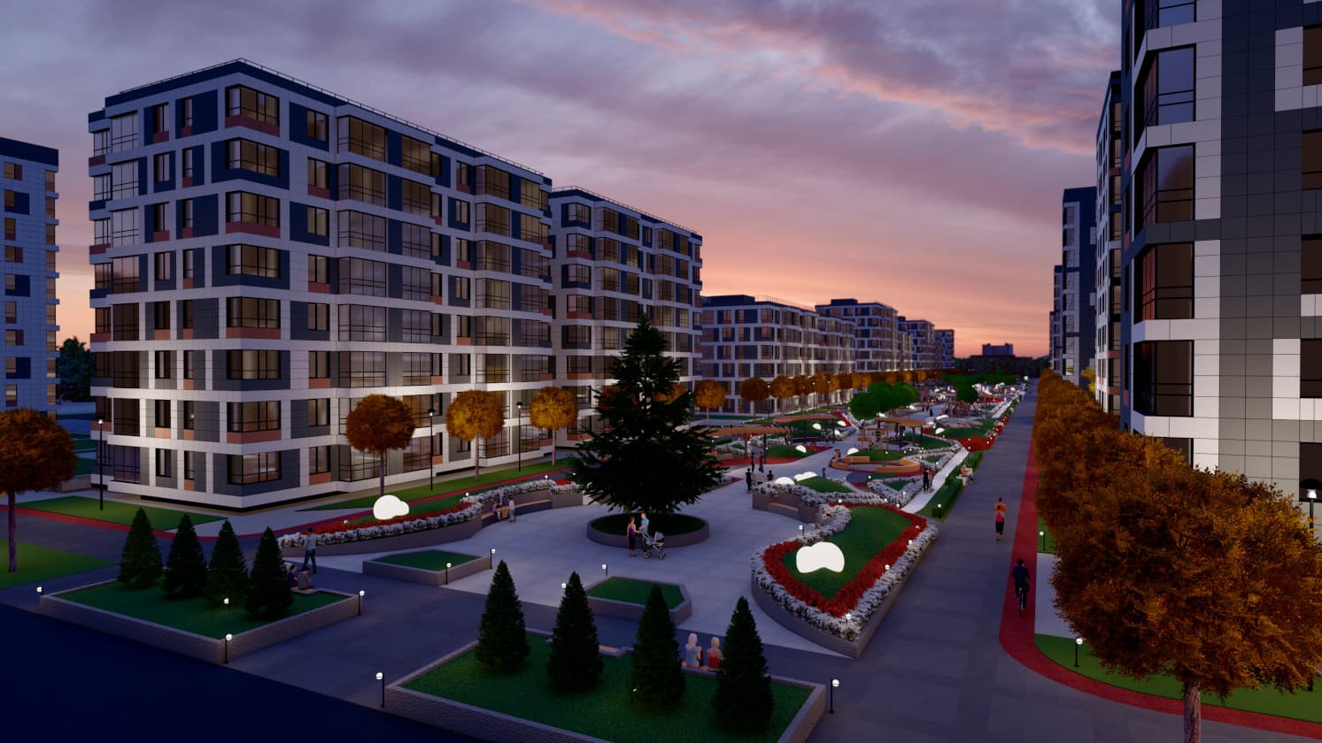 Возводятся не просто дома, а целый район с магазинами, современными детскими и спортивными площадками и протяженным прогулочным парком, который станет центром притяжения всего района.Собственный парк 20 000 м2