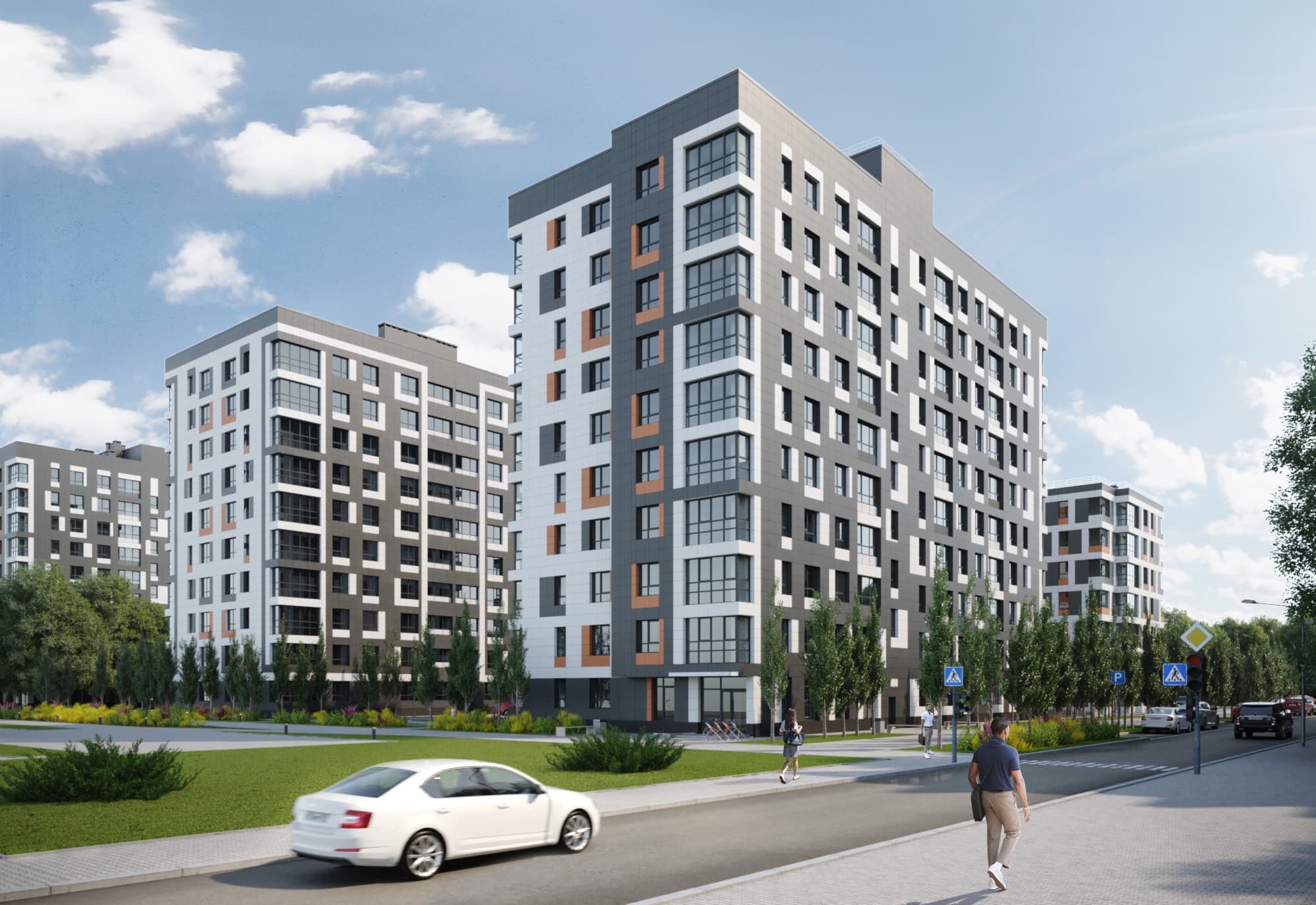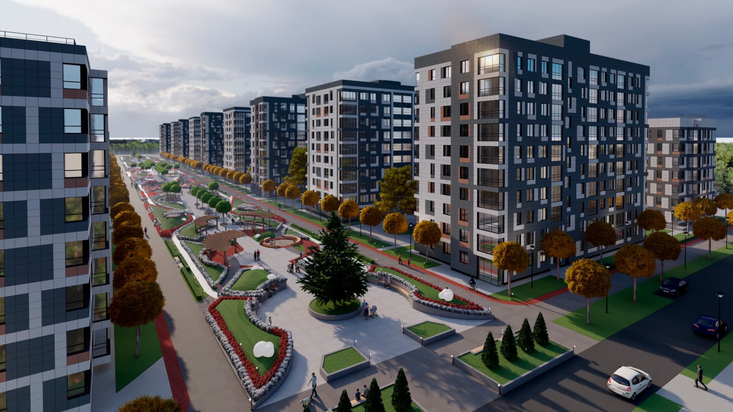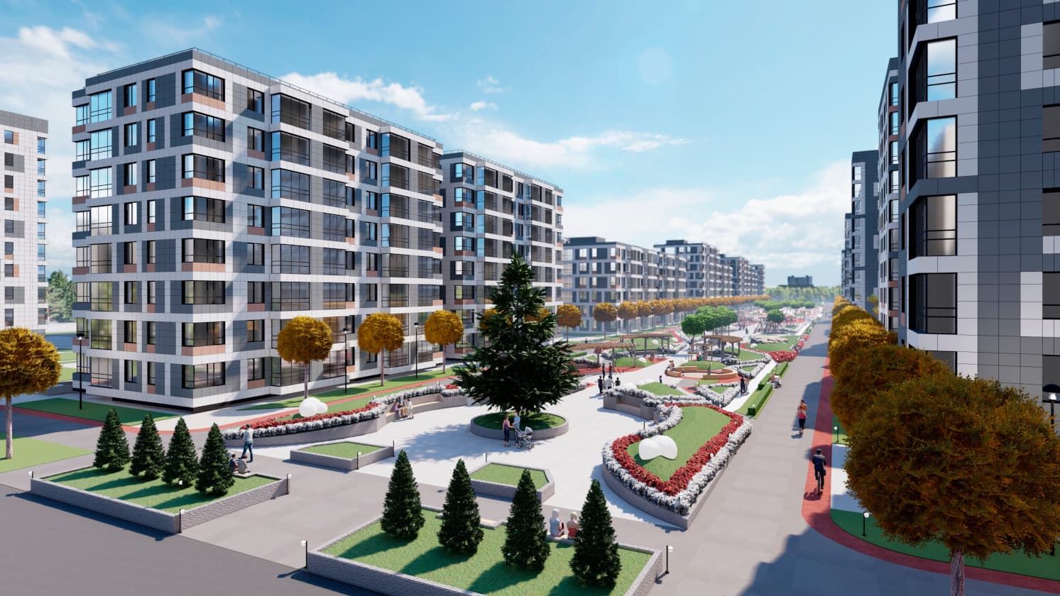 Возводятся не просто дома, а целый район с магазинами, современными детскими и спортивными площадками и протяженным прогулочным парком, который станет центром притяжения всего района.Собственный парк 20 000 м2