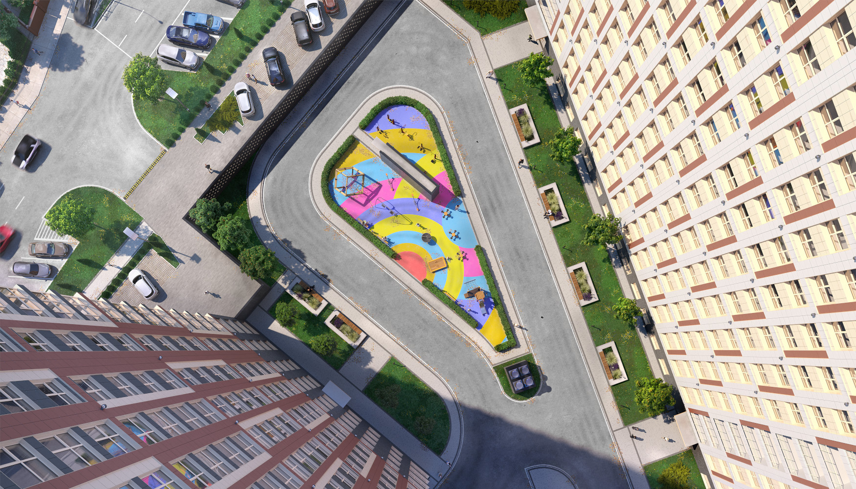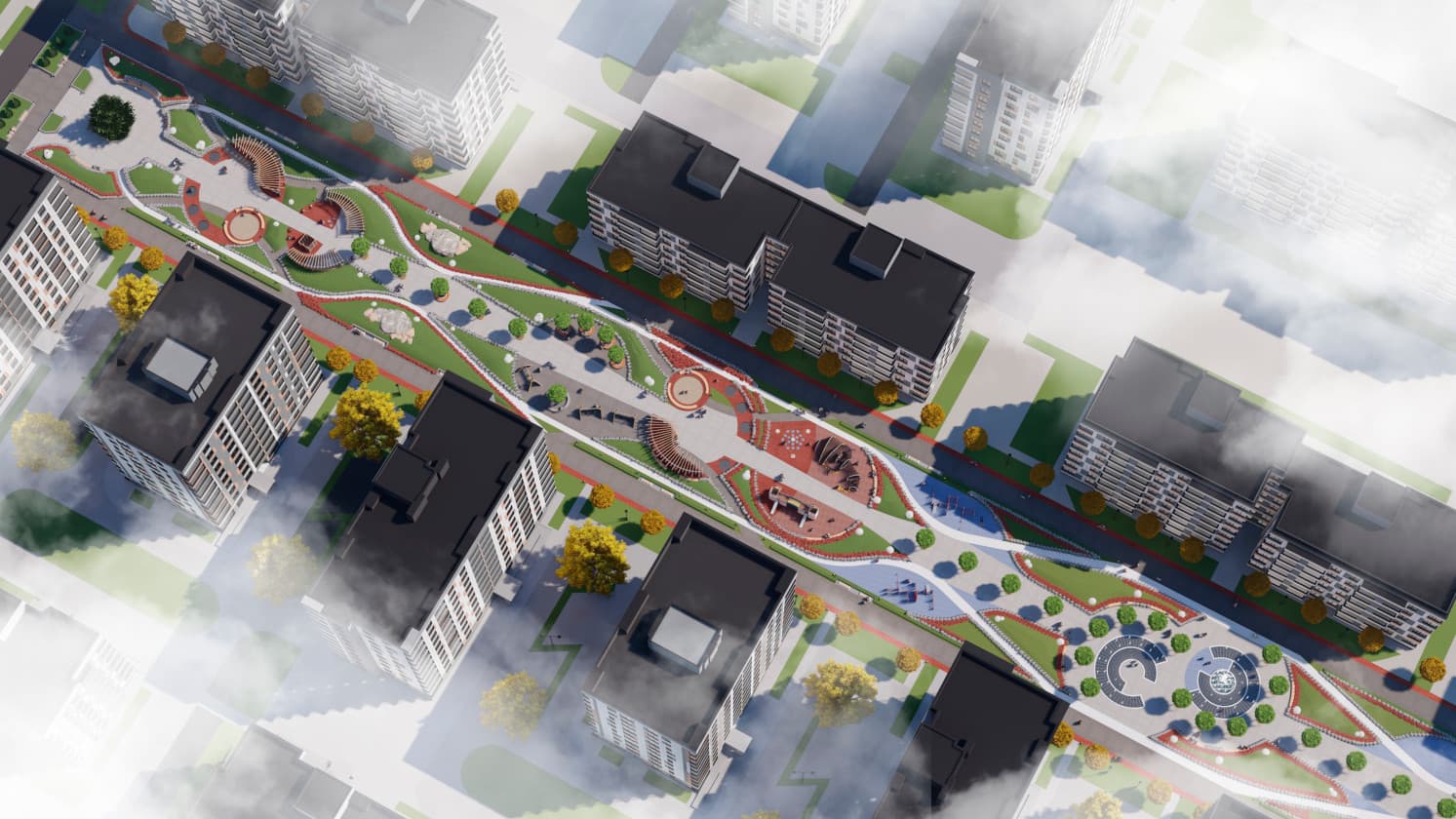 Парк будет идеально приспособлен для прогулок с детьми. Здесь есть детские площадки и уголки отдыха.